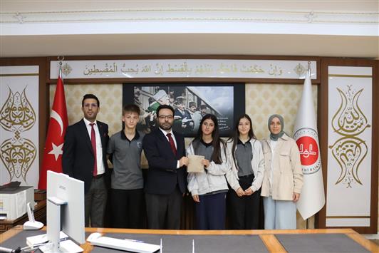 Güneşler Anadolu Lisesi öğrencileriden Gazze’ye yardım amacıyla düzenlenen kermeste topladıkları yardımları Filistin’e ulaştırılmak üzere ilçe müftümüze takdim ettiler.
