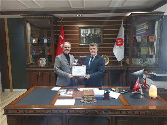İlçe Müftümüz Mehmet Çelebi, görevlimizi tebrik ederek katılım belgesini makamında takdim etti ve görevinde başarılarının devamını diledi.